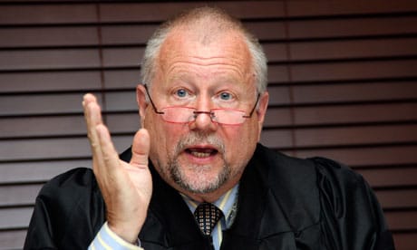 International criminal defense attorney Peter Erlinder – in handcuffs for "genocide denial" – appears in a Kigali, Rwanda, courtroom with Kenyan lawyer Kennedy Ogetto in May 2010.